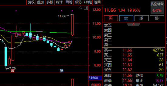 航空装备、军工电子、军民融合、大飞机等细分板块也纷纷放量上攻,晨曦航空、华伍股份、金明精机等多股20%涨停,润贝航科、巨力索具、航天长峰、天箭科技等批量涨停。